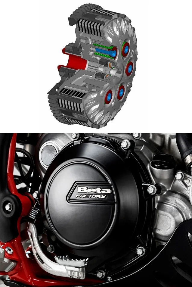 -All New clutch: A total overhaul has developed a more compact and lighter weight clutch that improves its feel, precision, and stability as operating temperatures change. This new system provides more progression in clutch feel that allows for better control overall, making the tough lines even more graceful. A smaller, more compact clutch cover has been installed.